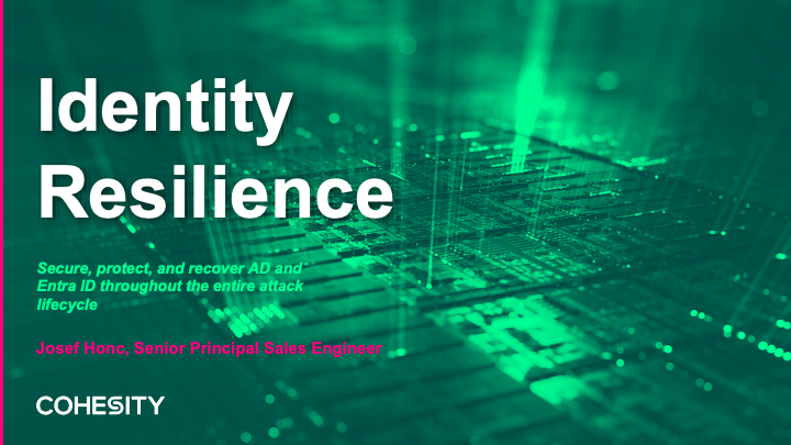 Cohesity Identity Resilience ļauj organizācijām atklāt, izturēt un ātri atgūties no identitātes uzbrukumiem pakalpojumā Active Directory un Microsoft Entra ID, aizsargājot hibrīdas identitātes sistēmas un atjaunojot uzticamu piekļuvi pirms uzbrukuma, tā laikā un pēc tā.